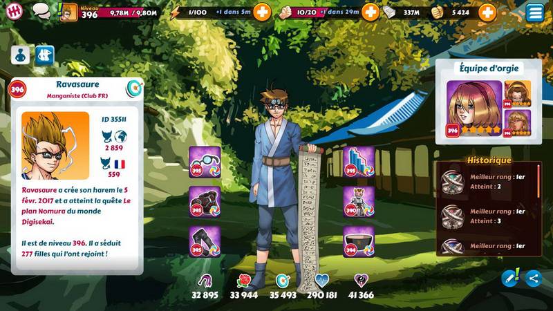 Quand j'ai commencé à jouer à jouer à Hentai Heroes, il y a un peu plus de trois ans, je faisais partie des premiers bêta testeur. Au départ, je n'étais pas spécialement emballé, car les jeux hentai n'apportaient rien de particulier en terme de défis ou autre excitation, à cette époque, il valait mieux mater des fans art ou des vidéos hentai en VOSTFR, c'était bien plus pratique pour se faire plaisir. Finalement, après la sortie en live du jeu, j'ai commencé une vraie partie. C'est vrai qu'au début, le concept de collectionner des nanas qui sont des parodies d'héroïnes réelles était alléchant, et puis ensuite, il devient carrément addictif. Voici mon personnage après 3 ans de jeu :