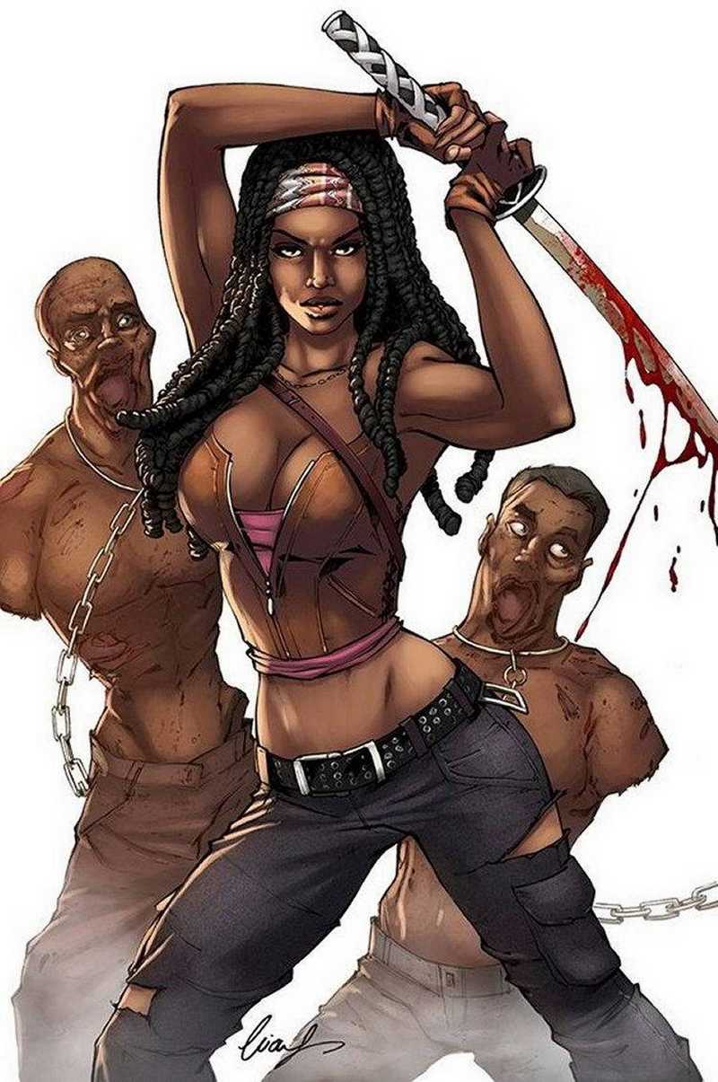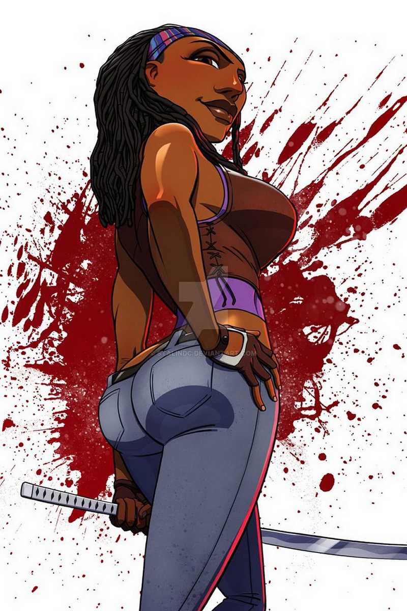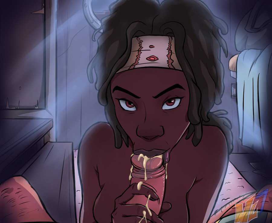 La belle Michonne, guerrière black au cul très sexy, est la seule nana de la série qui a marqué les esprits des fans. Elle est aussi la seule à être restée en vie en 10 saisons. C'est pourquoi elle est « presque » la seule à bénéficier d'une parodie porno dans Walking Dead. Lorsque nous avons fait sa connaissance, nous pensions qu'elle était lesbienne, car elle aurait vécu une histoire d'amour avec Andréa, mais finalement, elle s'est avérée être une sacrée bouffeuse de bites. Et c'est Rick qui en aura profité le plus, car ils auront fini ensemble... Voici quelques photos hentai de Michonne, dont certaines avec Rick, ou d'autres illustres inconnus.